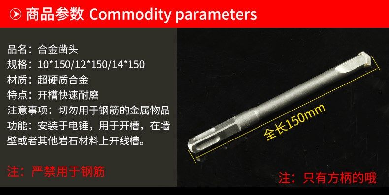 Engage Hammer Chisel Head Alloy Shovel Head Widening Drill Groove Round Shank Electric Drill Square Handle Four Pit Rational Wire Box Flat Chipping Lengthened Small