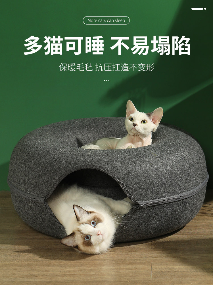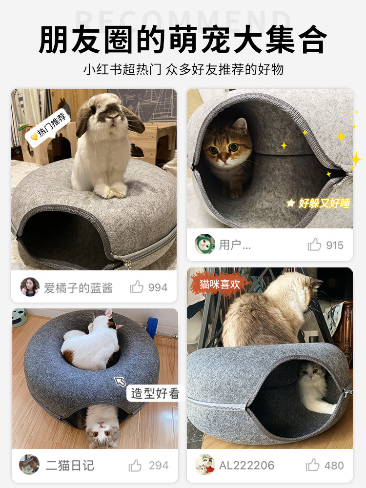 Cat nest tunnel four seasons universal cat hiding cat house winter warm closed rabbit cat toy donut nest