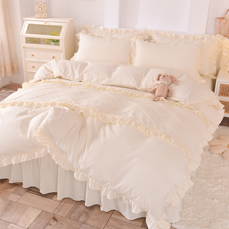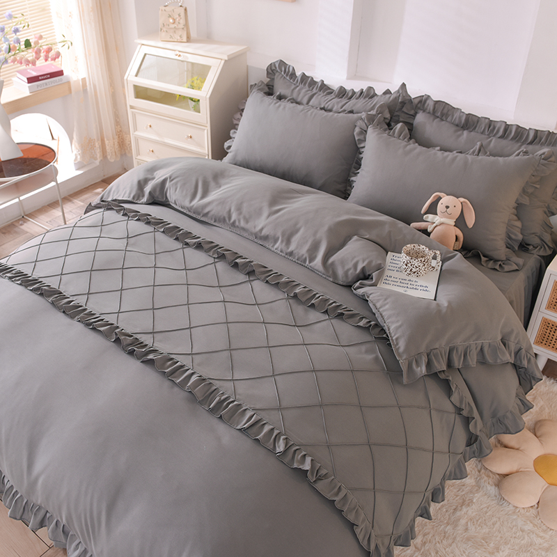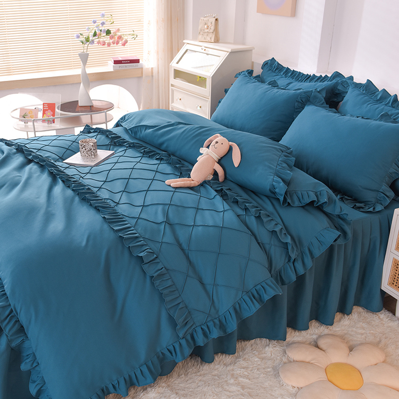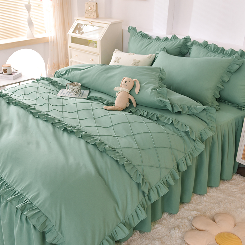 Total Cotton Bed Four Pieces Of Jacket Pure Cotton Pure Color Quilt Cover 3 Pieces Non-slip Bed Linen Lotus Side Bed Skirt Bed Pint Pro Skin