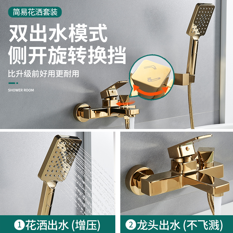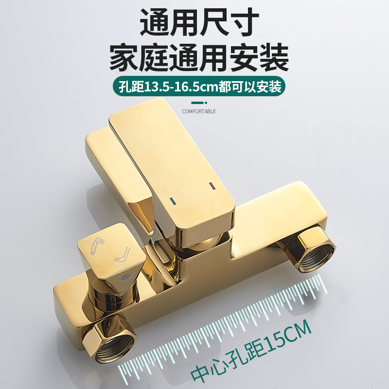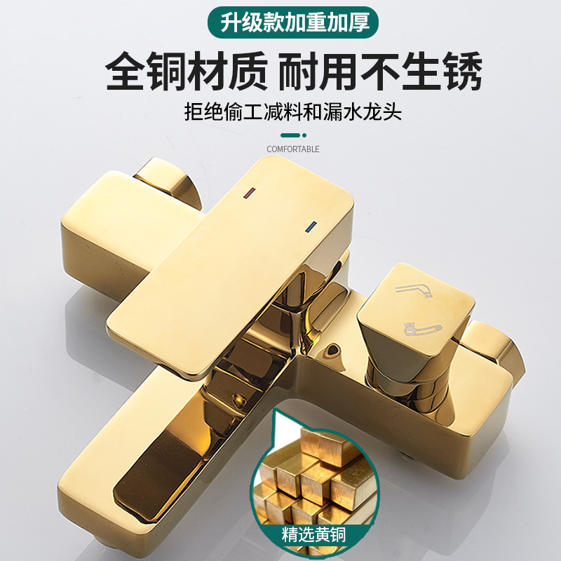 Golden Shower Tap Full Copper Mixed Water Valve Bath Shower shower suit bathroom bathtub Side open triple hot and cold tap