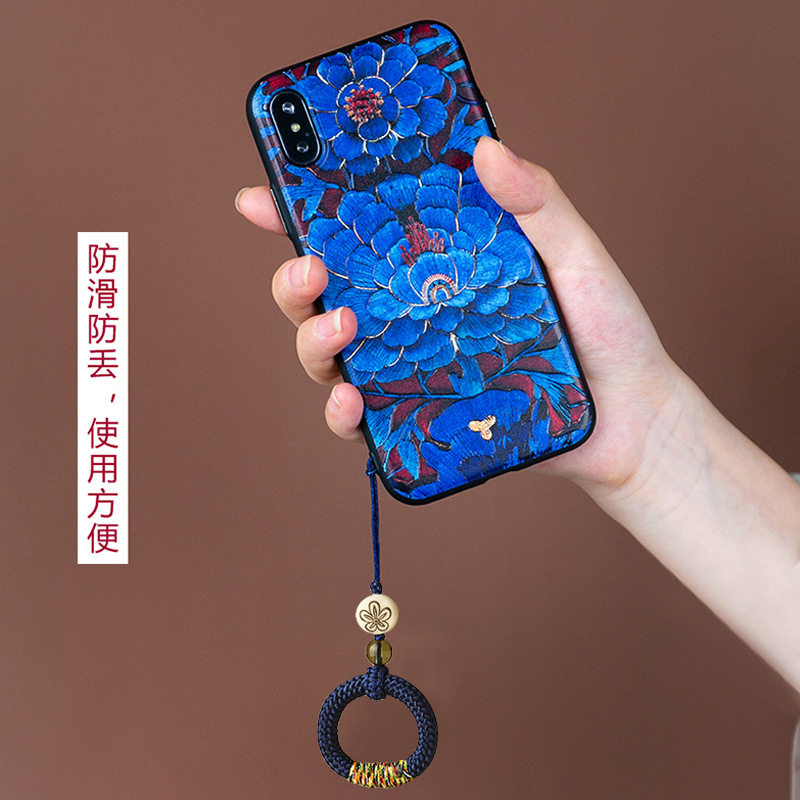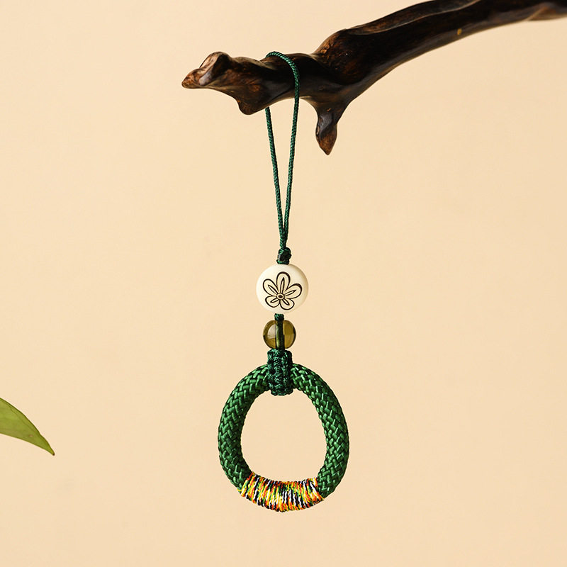 Chinese wind hand-weaving mobile phone rings-button chain personality creative man car key button U disk pendant for Apple Huawei Oppo Xiaomi multi-function fugal anti-loss hanging