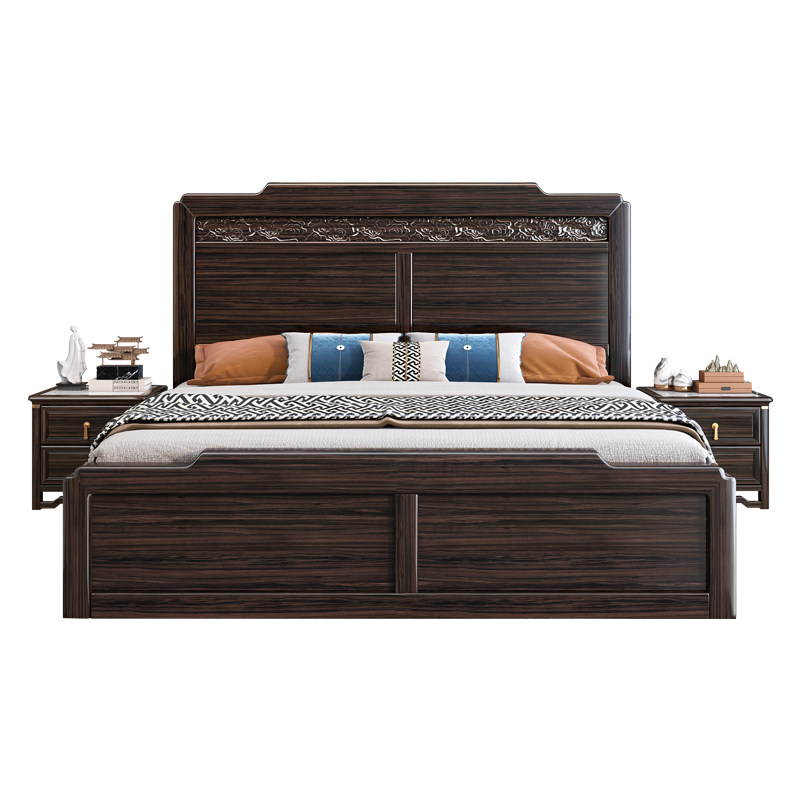 New Chinese style full solid wood double bed ebony wood small apartment economical storage high box large bed modern home wedding