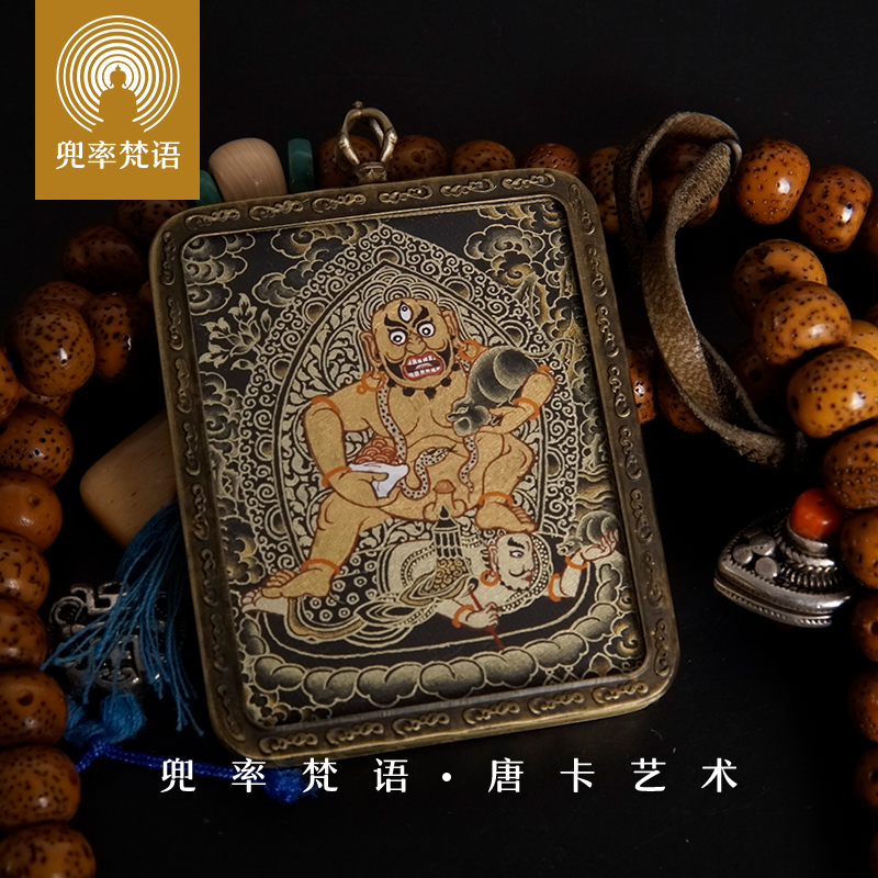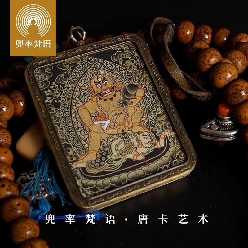 Tushi Sanskrit Convex Gold Black Gold Black God of Wealth Thangka Tibetan Mineral Pigment Hand-painted Benming Buddha Portable Small Thangka