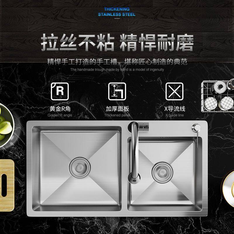 Kitchen Sink Double Groove 304 Stainless Steel Single Groove Home Handmade Washing Basin Double Basin Wash Vegetable Sink in the audience-Taobao