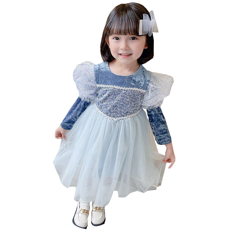 Aisha princess dress girls 2022 new children's dress spring and autumn long sleeve kids baby skirt spring western style