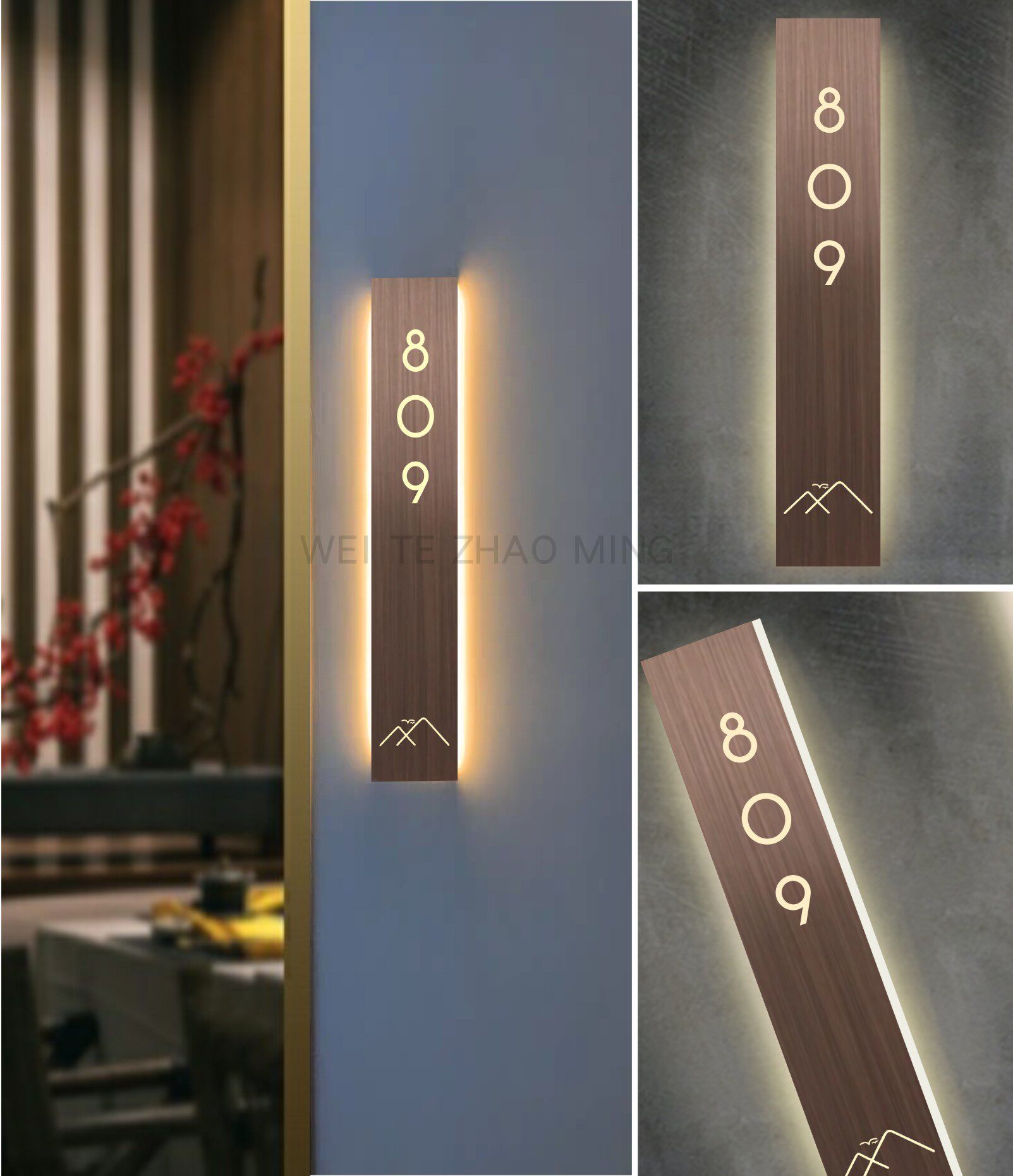 Stainless steel door plate custom stainless steel back light-emitting homestay hotel number box name logo minimalist Chinese