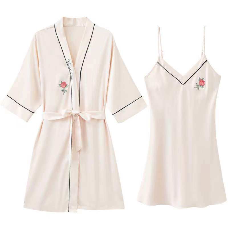 Sexy pajamas women's summer ice silk 2023 new high-end strap nightdress nightgown spring and autumn thin two-piece set