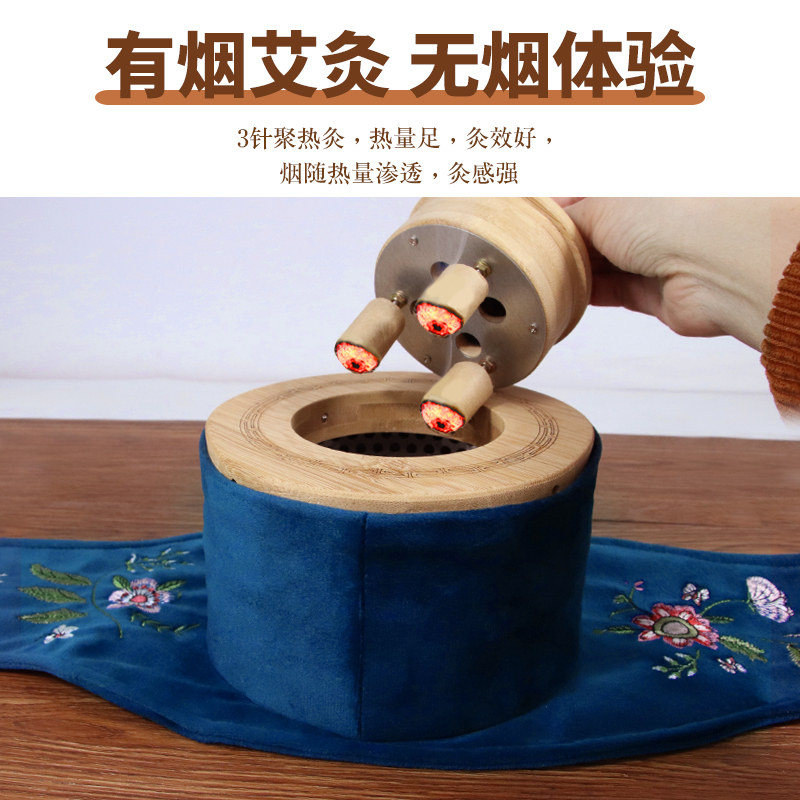 Wooden Large Horn Smoke-free Moxibustion Box With Moxibustion Home Fumigation Instruments With Waist Belly Large Area Moxibustion Box Jar