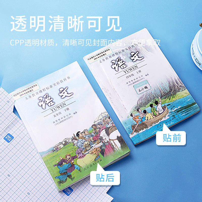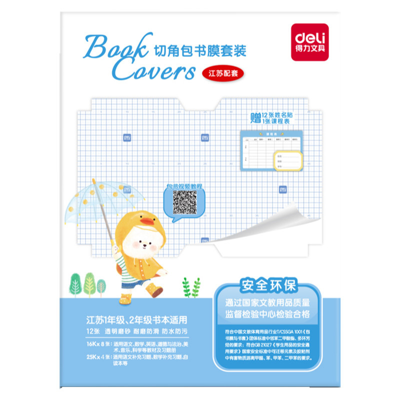 Dali Jiangsu elementary school bag Book Pichet angle 1 - 2 grade waterproof package film environmental protection transparent 3 - 6 class set