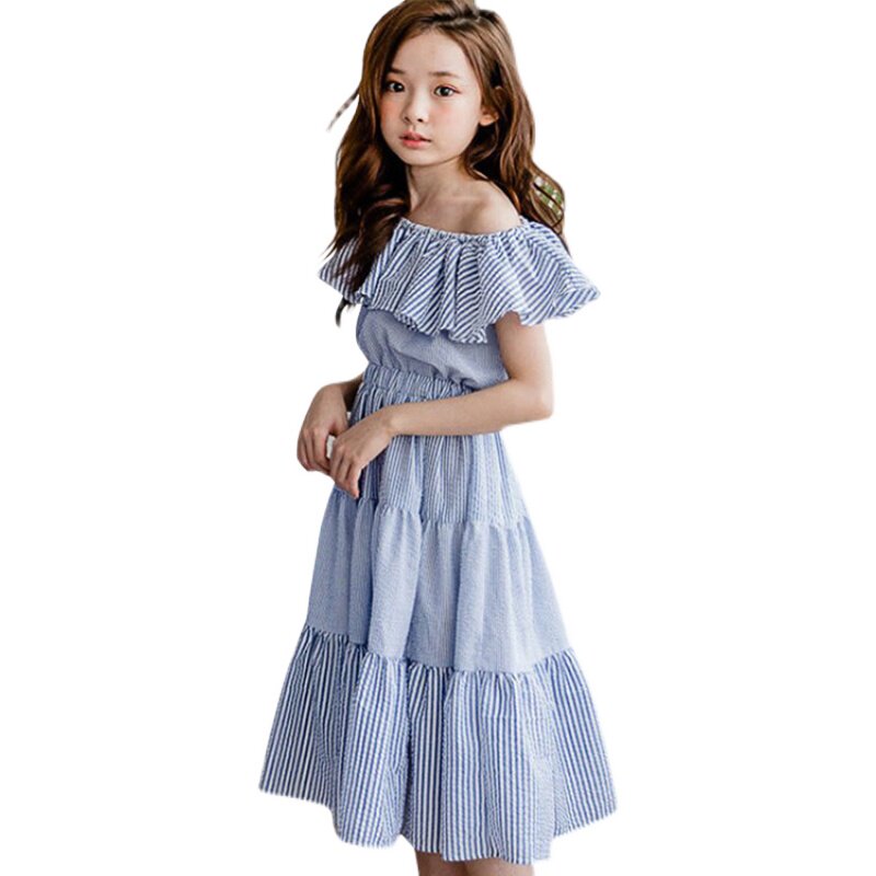 Girl dress Summer Han Edition Pure cotton Strip Beach Dress in Big Child Skirt