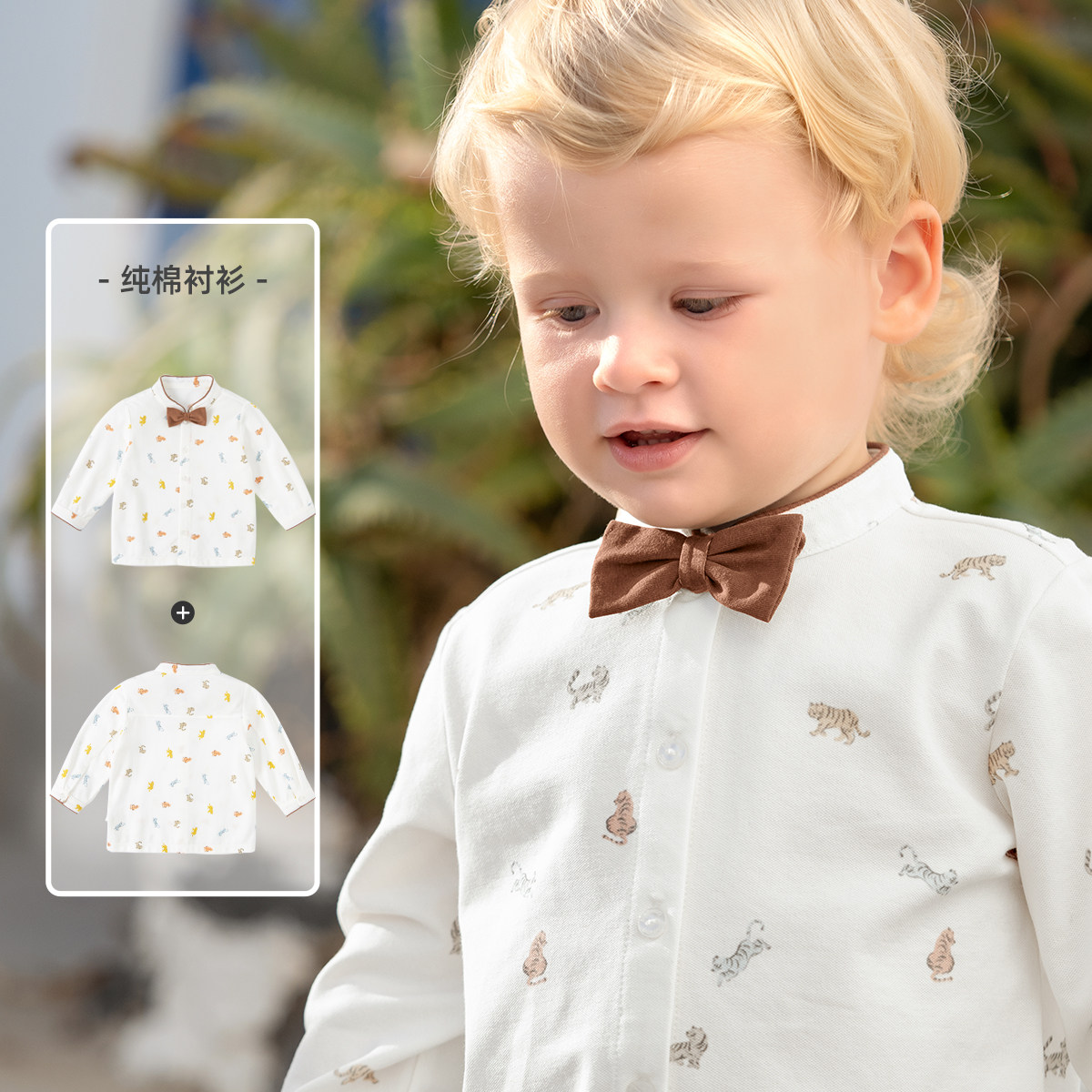 David Bella Boy Clothing Boy Shirt 2022 New Spring Dress Children Baby Foreign Pie Shirt Children Pure Cotton Blouse
