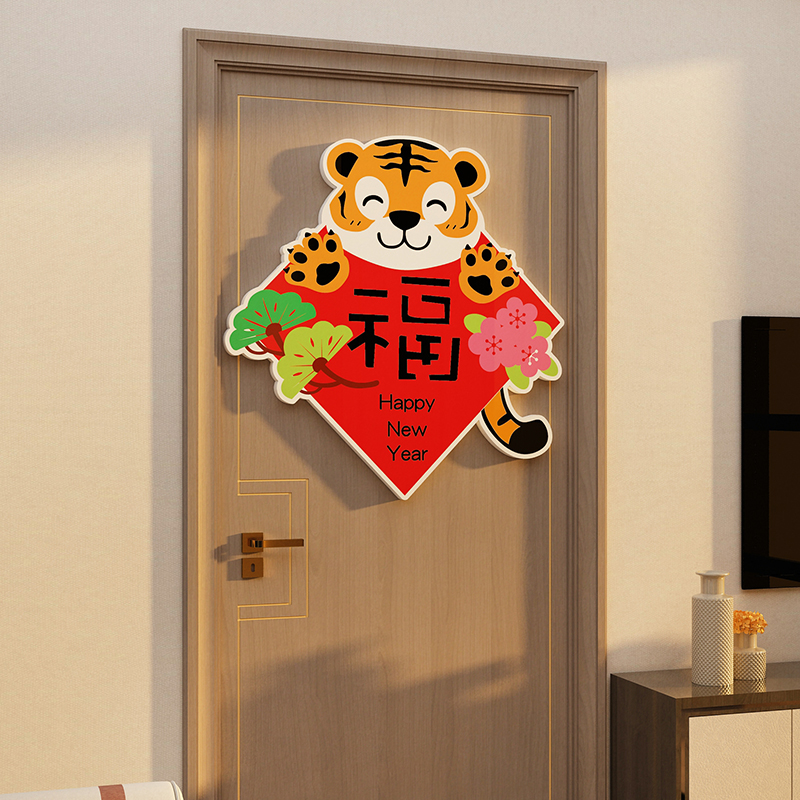 2022 New Year decorations for the Year of the Tiger TV background wall porch Fu word bedroom door stickers self-adhesive 3d three-dimensional