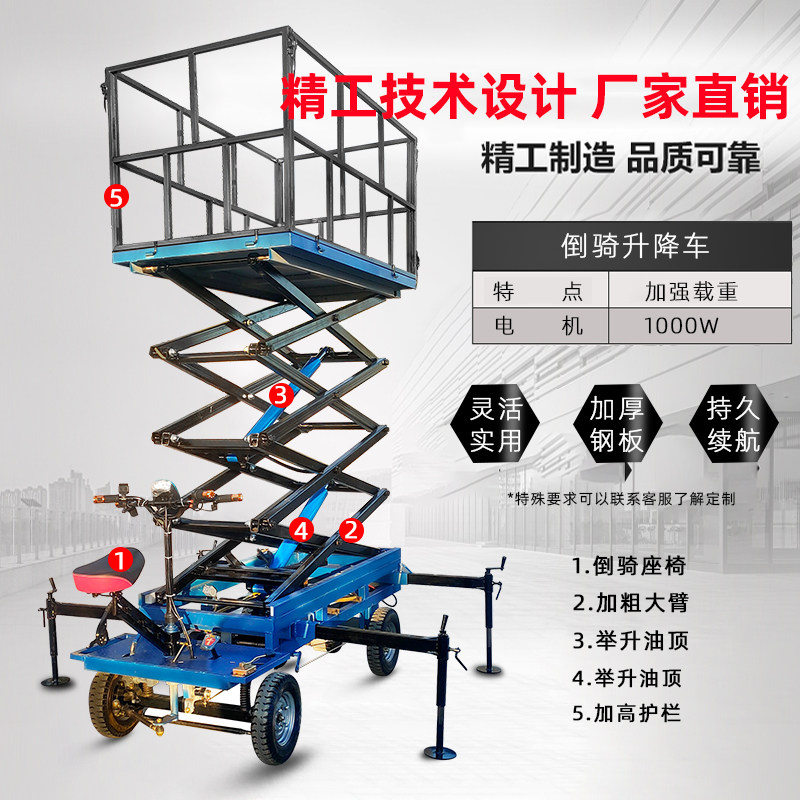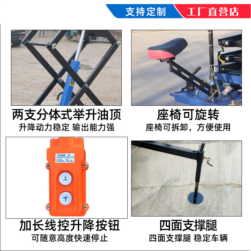 Electric four-wheeler lifting car moving hydraulic lift small lifting table inverted riding donkey on-board high transport transporter