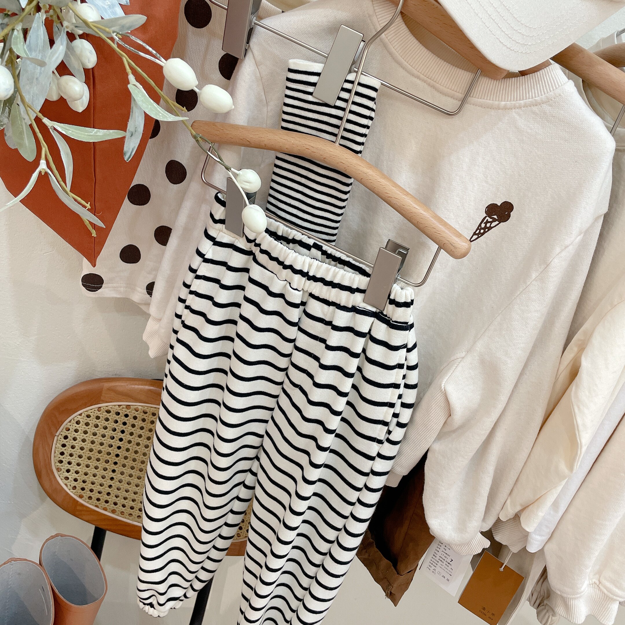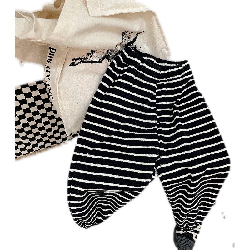 Girl Striped Pants Cotton Foreign Pie Trendy Korean Version Loose Sports Pants 100 Hitch Casual Boy Girl Trousers