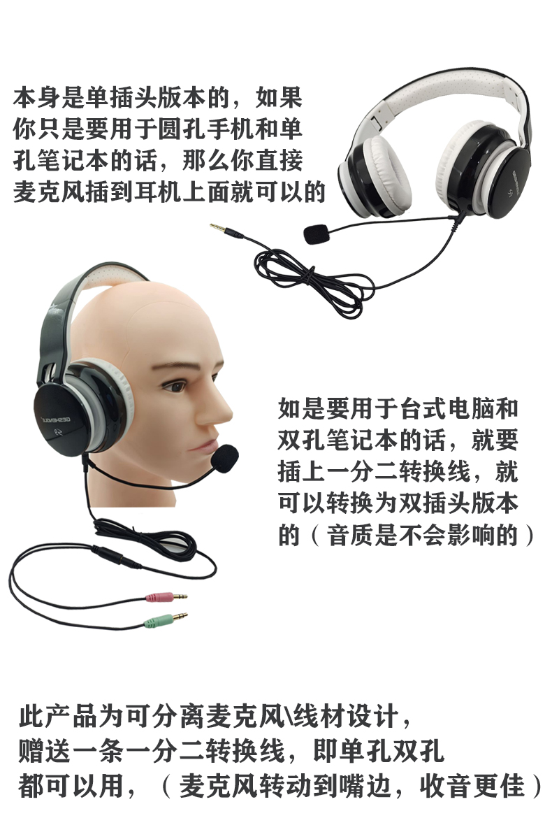 Long wheat online class learning desktop computer headset head-mounted interchangeable line foldable mobile phone student universal headphone belt