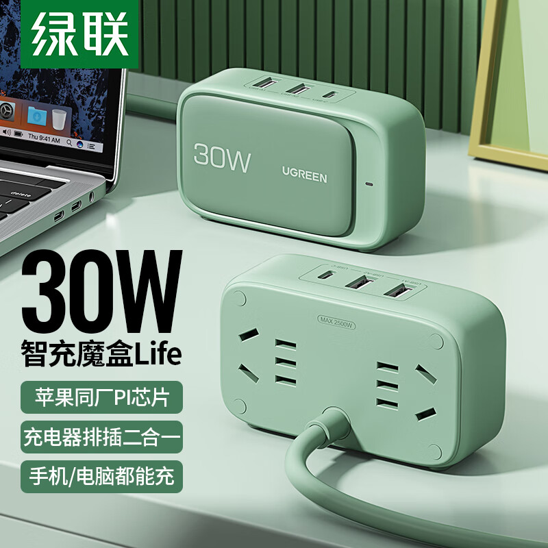 Green Union 30w charging plug-in Cube Cube Multi-functional power socket converter Home porous patch panel with usb drag wire plate phone notebook PC charger two-in-one wiring board National Label-Taobao