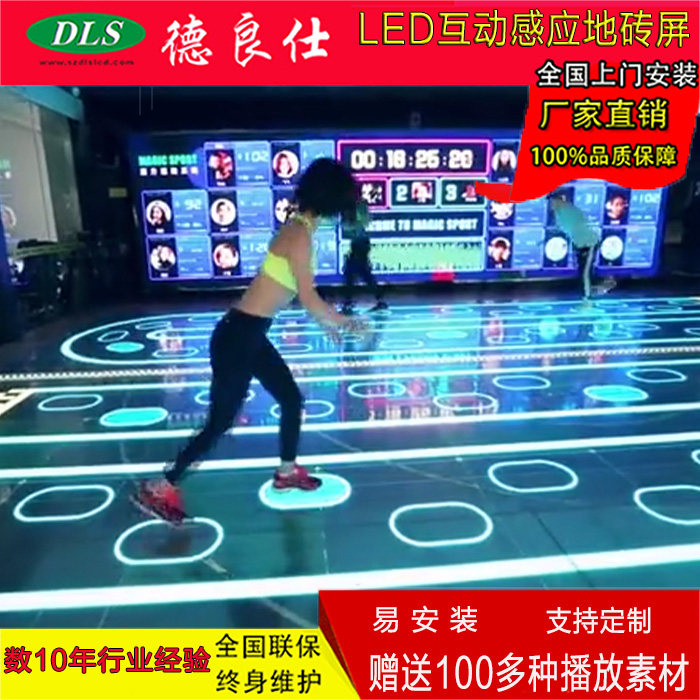 Supermarket indoor waterproof can be stepped on built-in induction ground LED multiplayer interactive full of professional floor tile screen