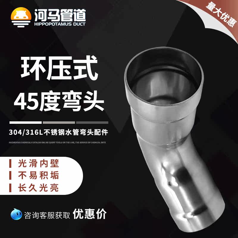 304 stainless steel 45-degree elbow ring pressure sanitary grade 4 points 6 points household engineering tap water pipe fittings