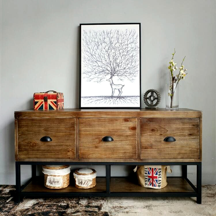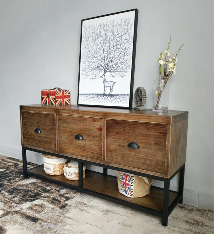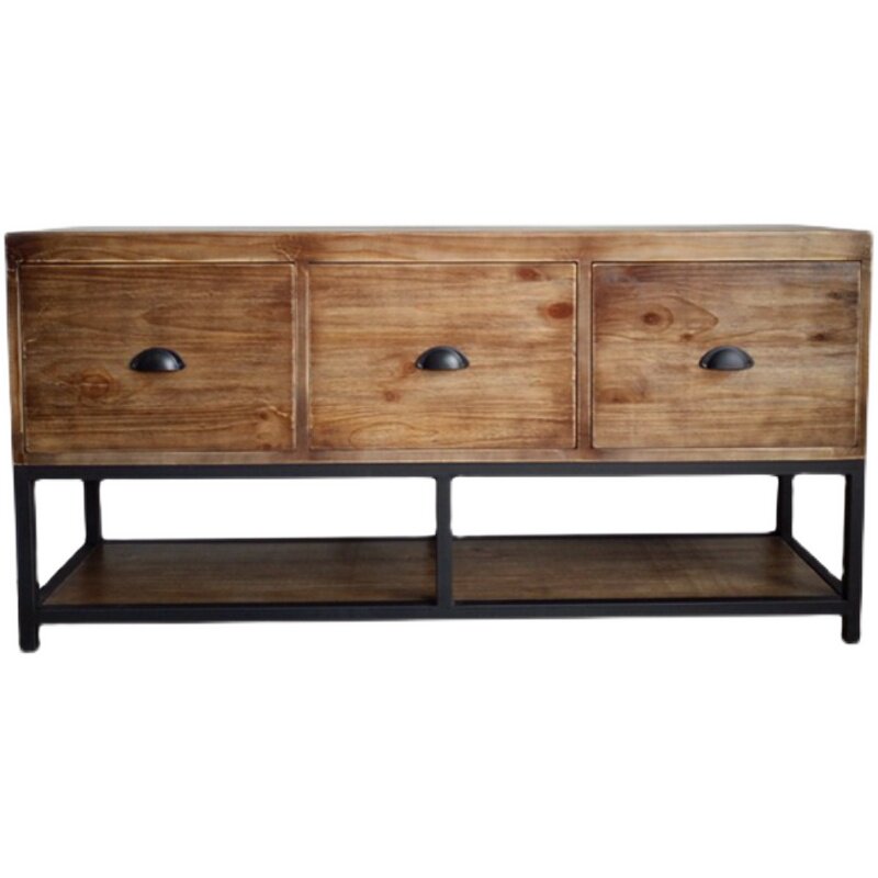 American retro old solid wood sideboard wrought iron locker storage low cabinet drawer side cabinet living room coffee table