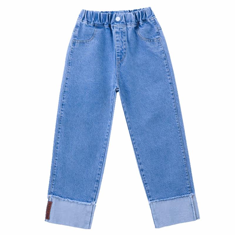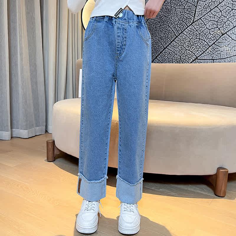 Girl Straight Drum Jeans Spring Autumn Outwear CUHK Boy Light Color Broadlegged Pants Spring Children High Waist Casual Long Pants