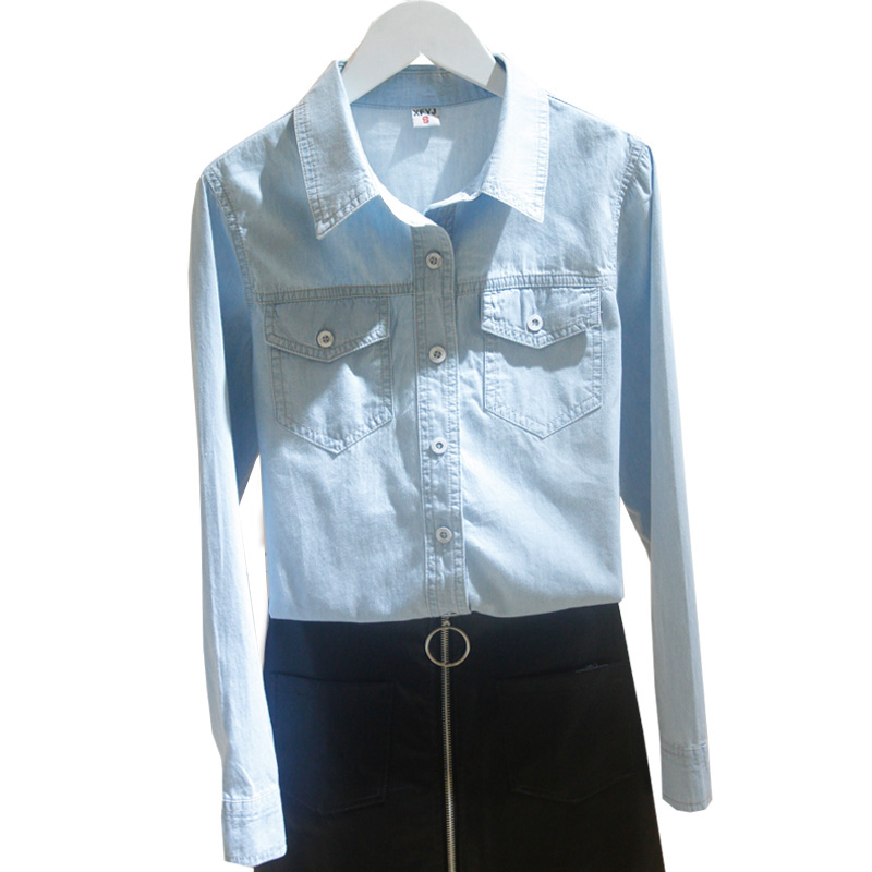 Tide jean shirt woman long sleeve 2023 new Han Fan medium long shirt menu slim coat