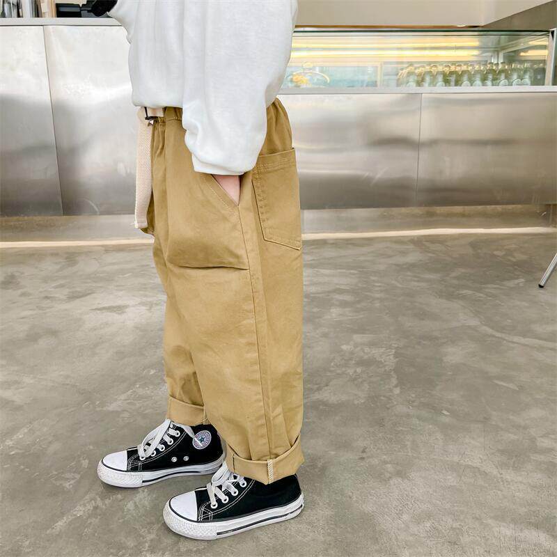 2021 spring and autumn Korean version of solid color trousers cotton trendy children's universal spot with belt pocket casual trousers
