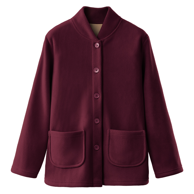 Middle-aged and elderly people's autumn and winter thickened coats solid color mother wear old people's polar fleece warm stand-up collar cardigan long-sleeved top