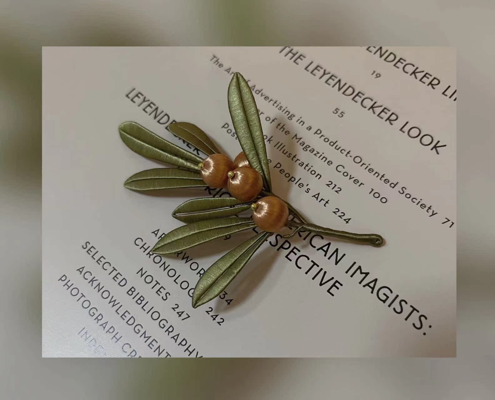 Original Modern Design Seabuckthorn Branch Wrap Flower Brooch Hairpin Hairpin with Hanfu Han Element Cheongsam Suit
