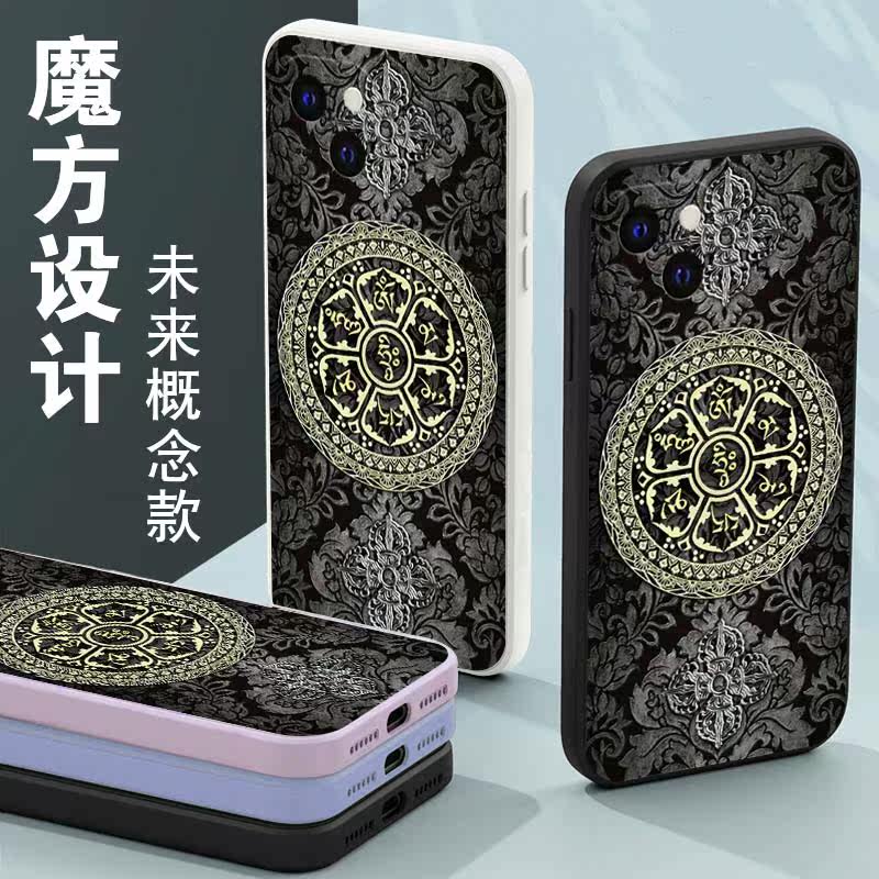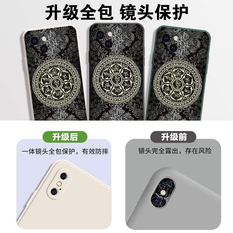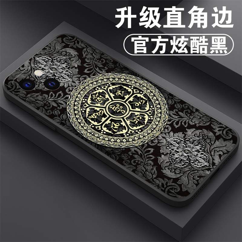 Apply Apple 13PROMAX mobile phone protection shell iPhone13pro Six words Great bright spell Pingguo 13mini True words Buddhist Heart via Air Sanskrit Right-angle Side Lens Full Package Soft Super