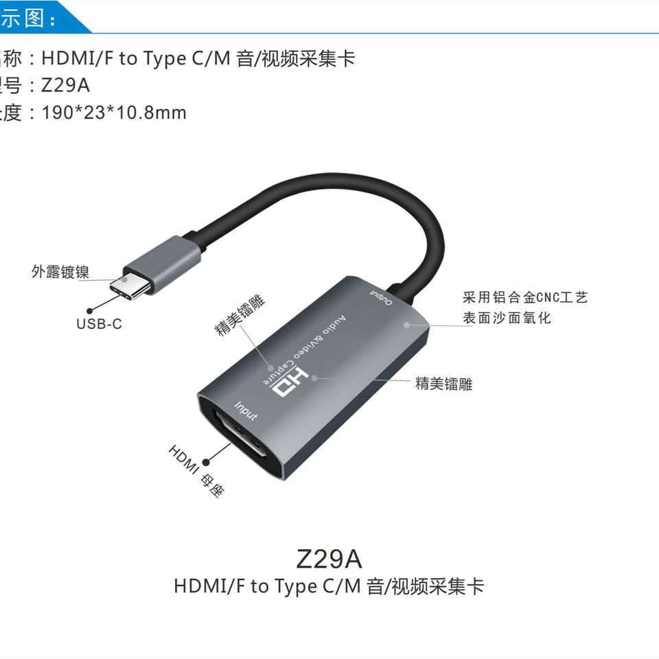 Type-c to HDMI high-definition audio and video capture card box mobile game mobile game live broadcast OBS game collector