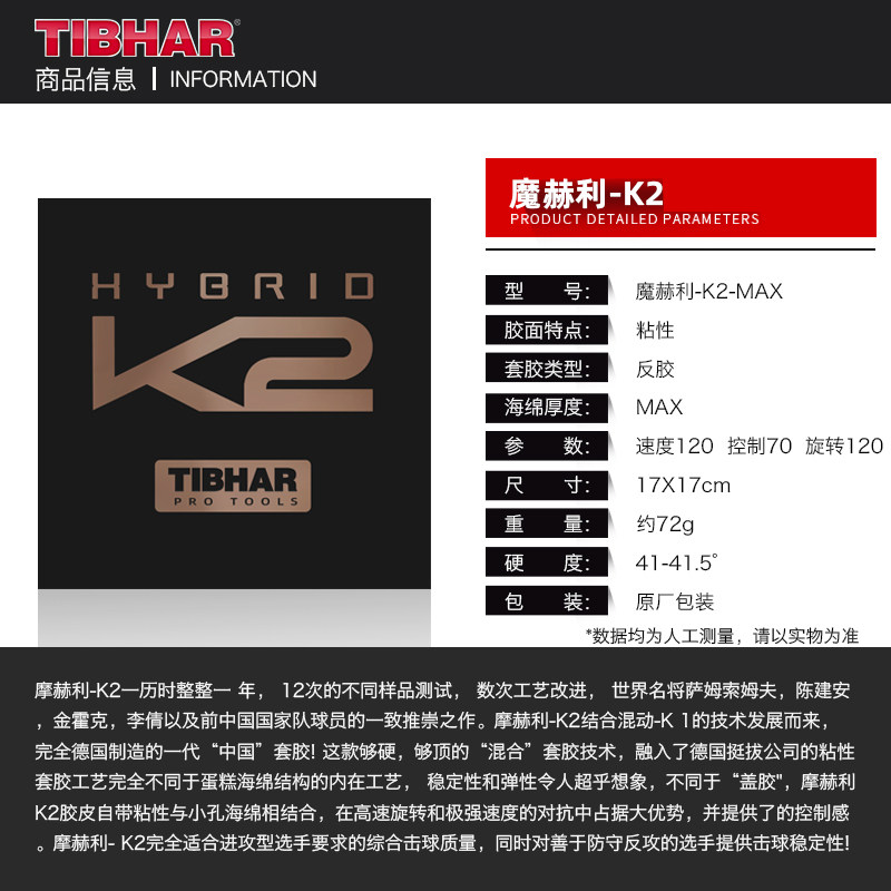 TIBHAR Quite Plucking K2 Germany Import Table Tennis Rubber Stickiness Sleeve Rubber Bing Ping-pong Racket Professional Quick Tapping Leather Glue-Taobao