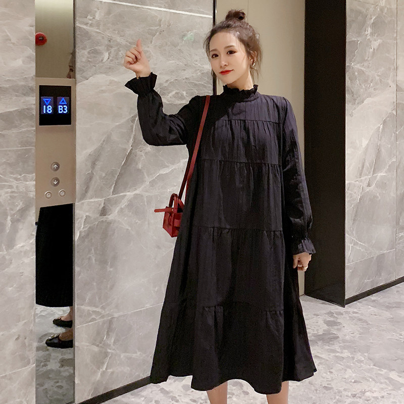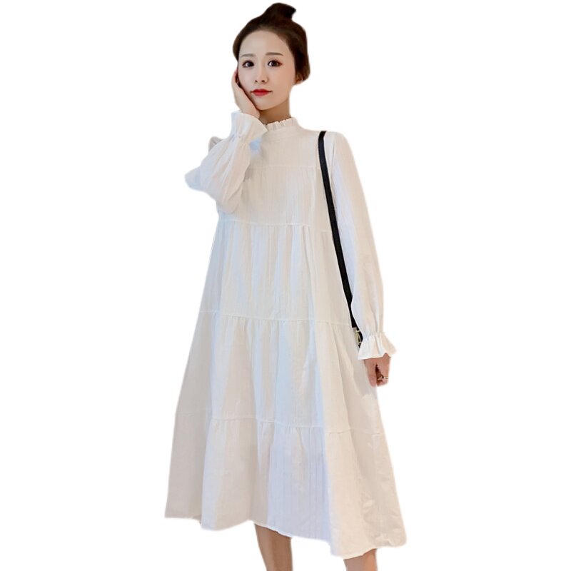 2022 spring new fashion trendy mother white outer dress fat mm mid-length version is thin and long-sleeved maternity dress