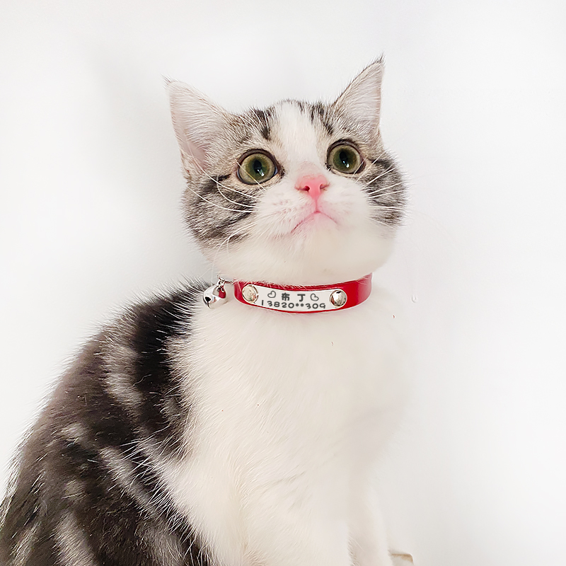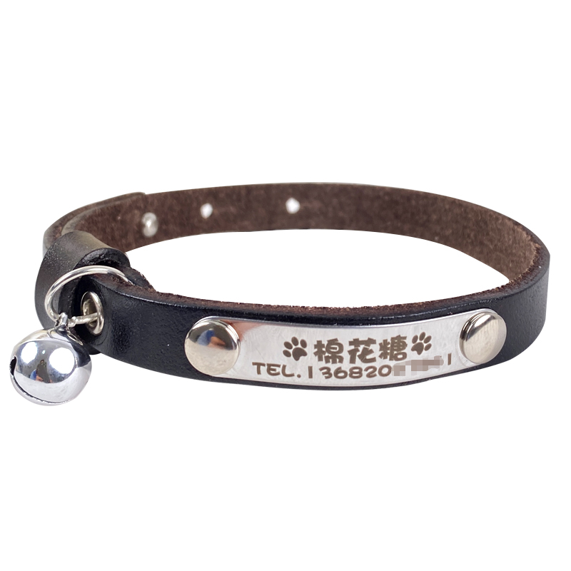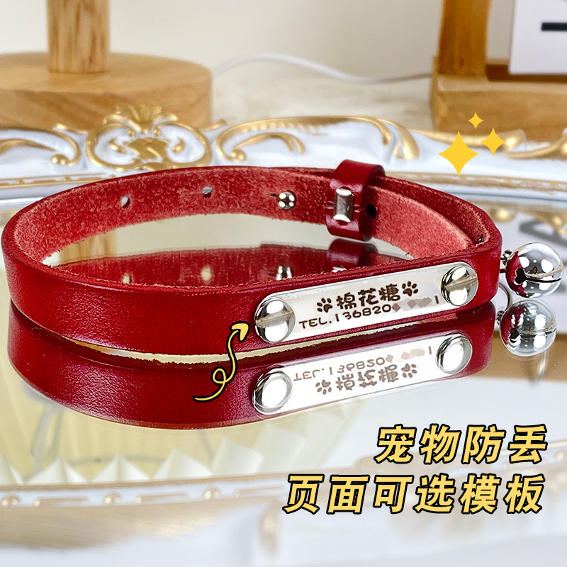 Cat laser lettering leather collar leather soft kitten bell kitten into cat small dog cat cat collar