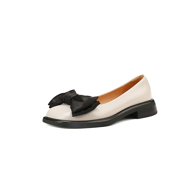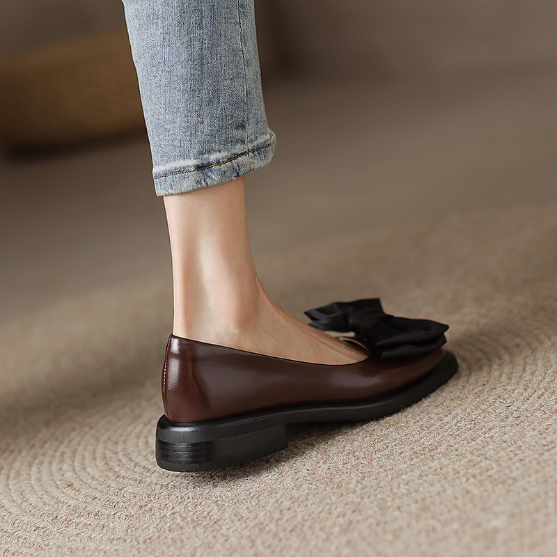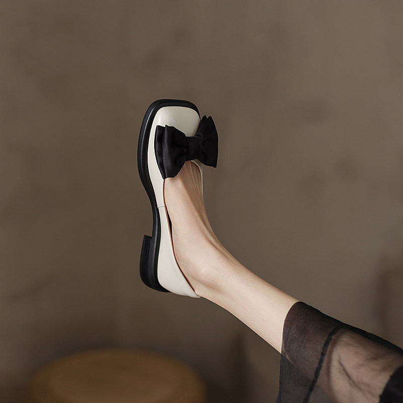 GANAIER niche design ~ fa style retro genuine leather sweet and beautiful butterfly knot square head soft-bottom single shoe woman 3CM