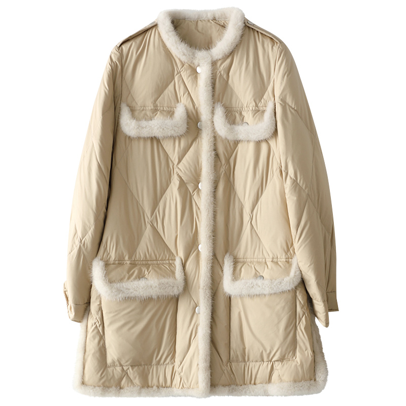 High End White Duck Down down jacket Female medium long version 2021 Winter thickened water mink fur collar fur coat small balsamy