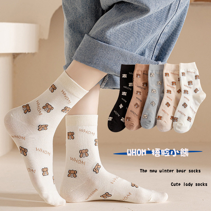 Kiki Little Terri autumn and winter cute bear socks in the tube cotton socks ins tide cartoon student cotton women's socks