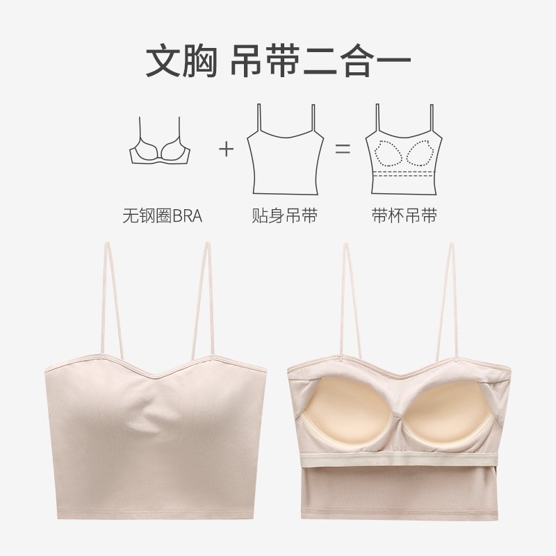 Thin section pure cotton beauty back straps shoulder straps chest pad one-piece tube top bra no steel ring comfortable underwear women