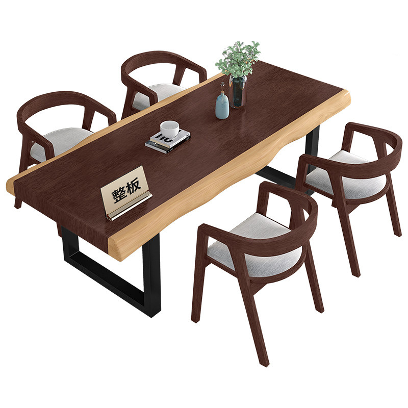 Nordic solid wood wrought iron desk simple home calligraphy long desk writing desk log large board computer desk