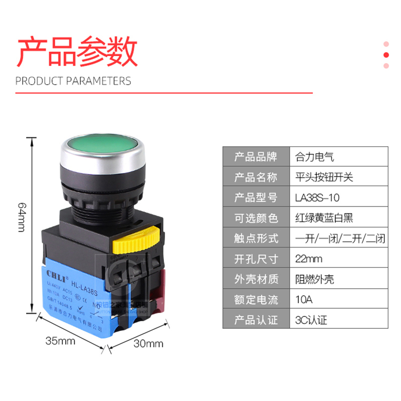 New silver point LA38S-11BN button short round self-covering button switch self-locking 22mm red and green switch