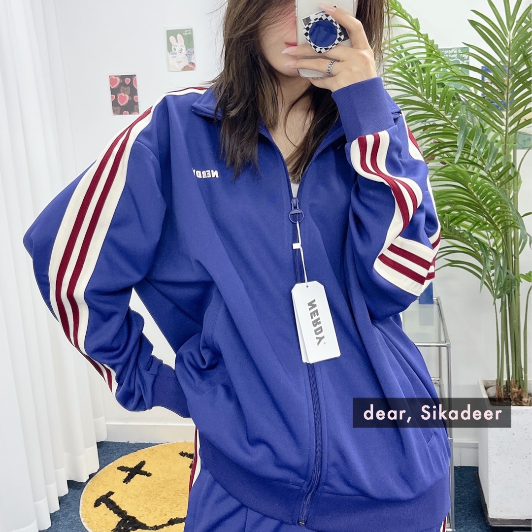 (Pink Domestic Bin Spot) South Korea Direct Mail NERDY Candy Color Striped Sportswear Jacket 22 Spring