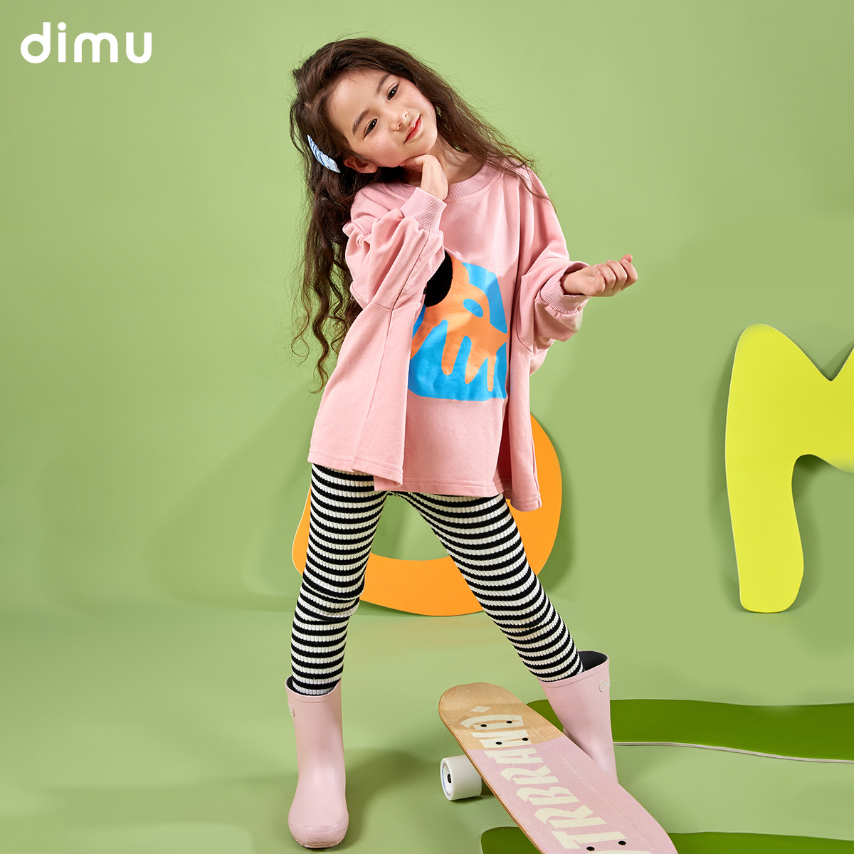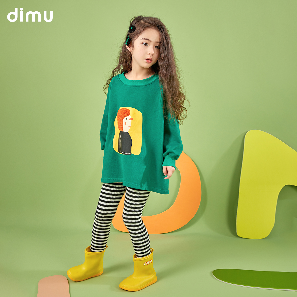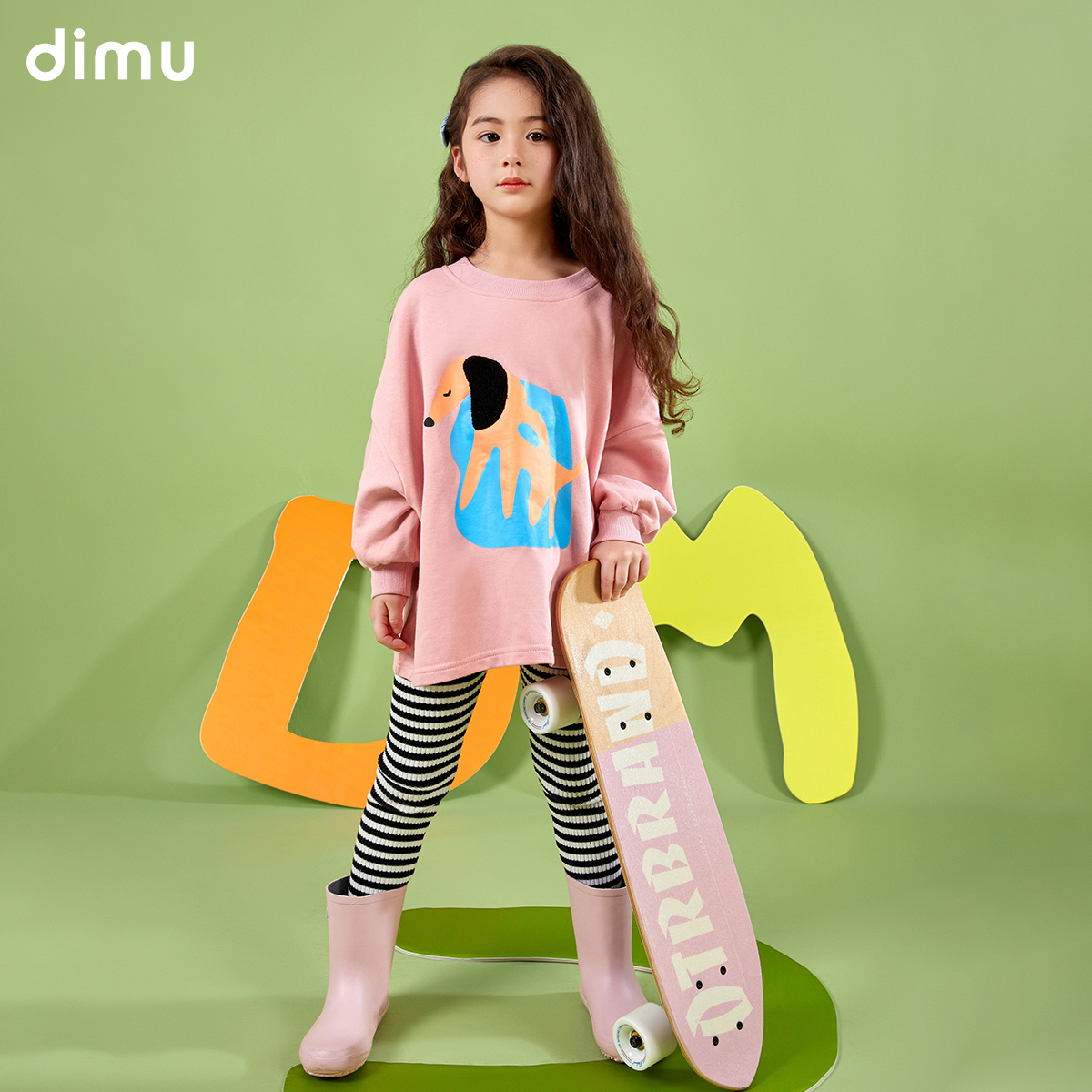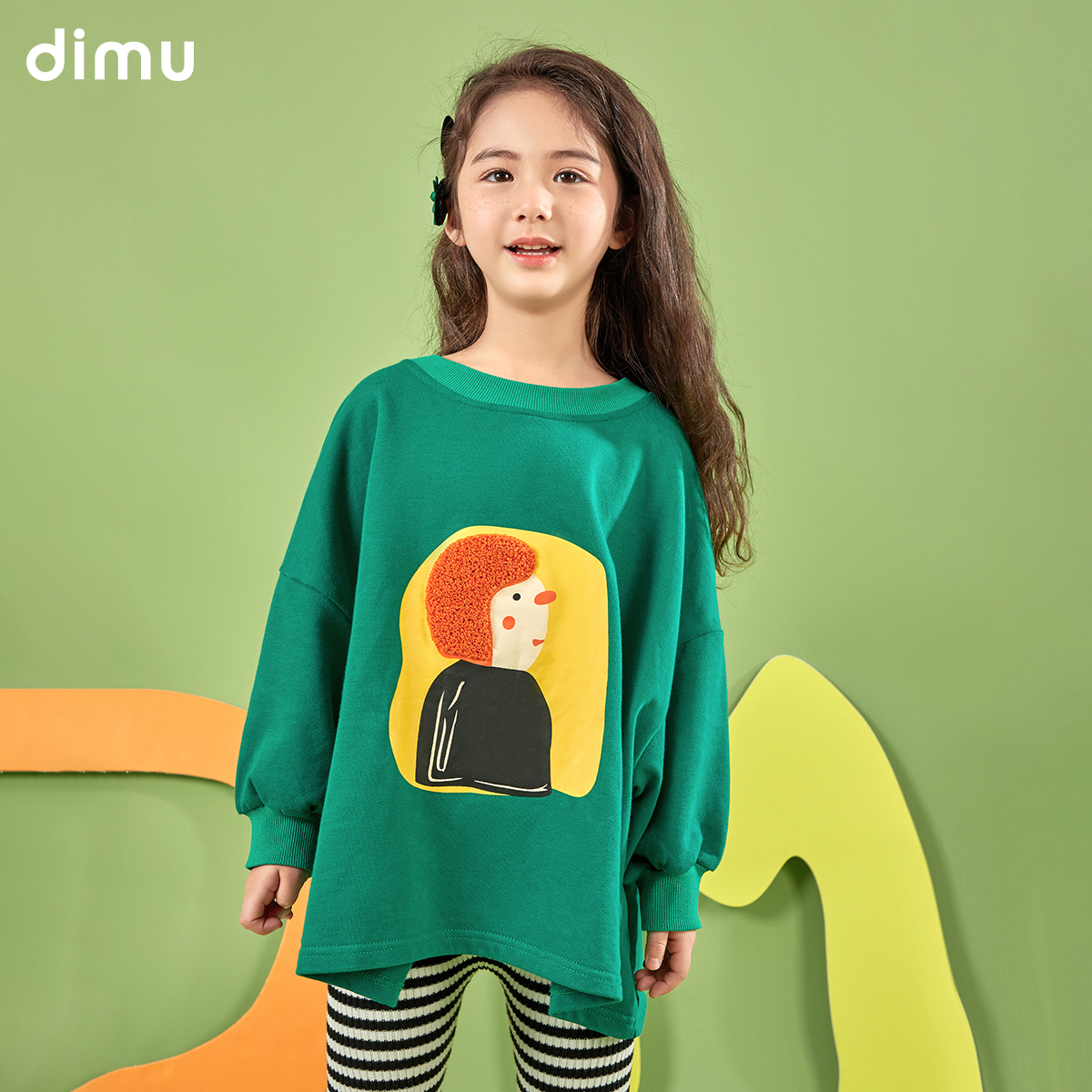 Flute Pastoral Girl T-shirt 2022 Spring Dress New Foreign Fashion Middle Long Version Little Girl's Sweatshirt Printed Girl Blouse