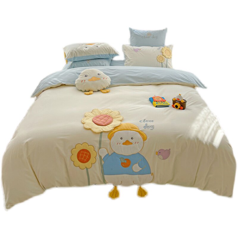Love duck is set with cotton washing cotton four pieces of pure cotton label embroidery stereo cartoon children's bedding