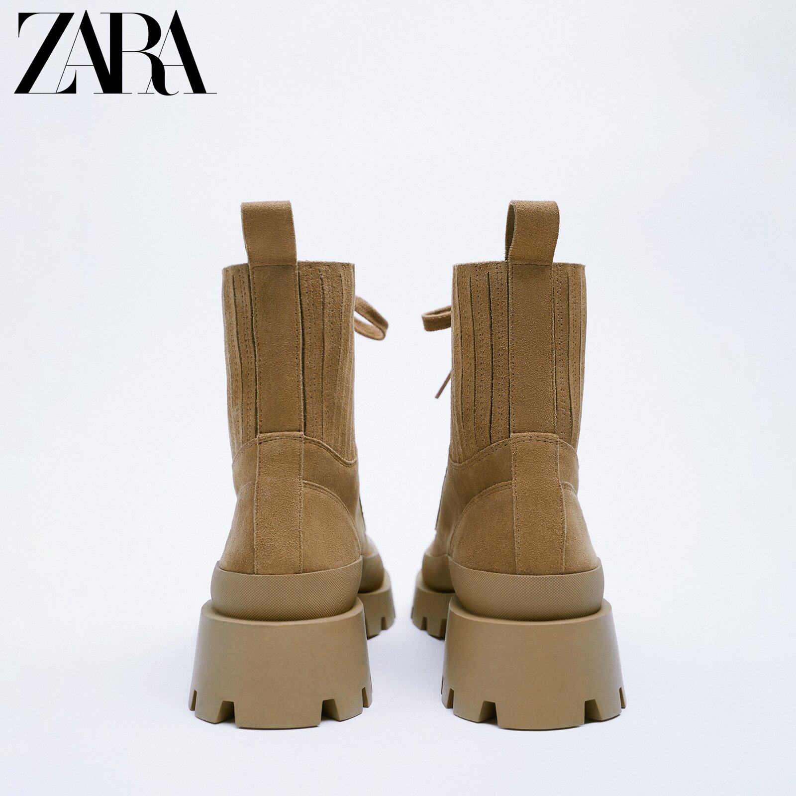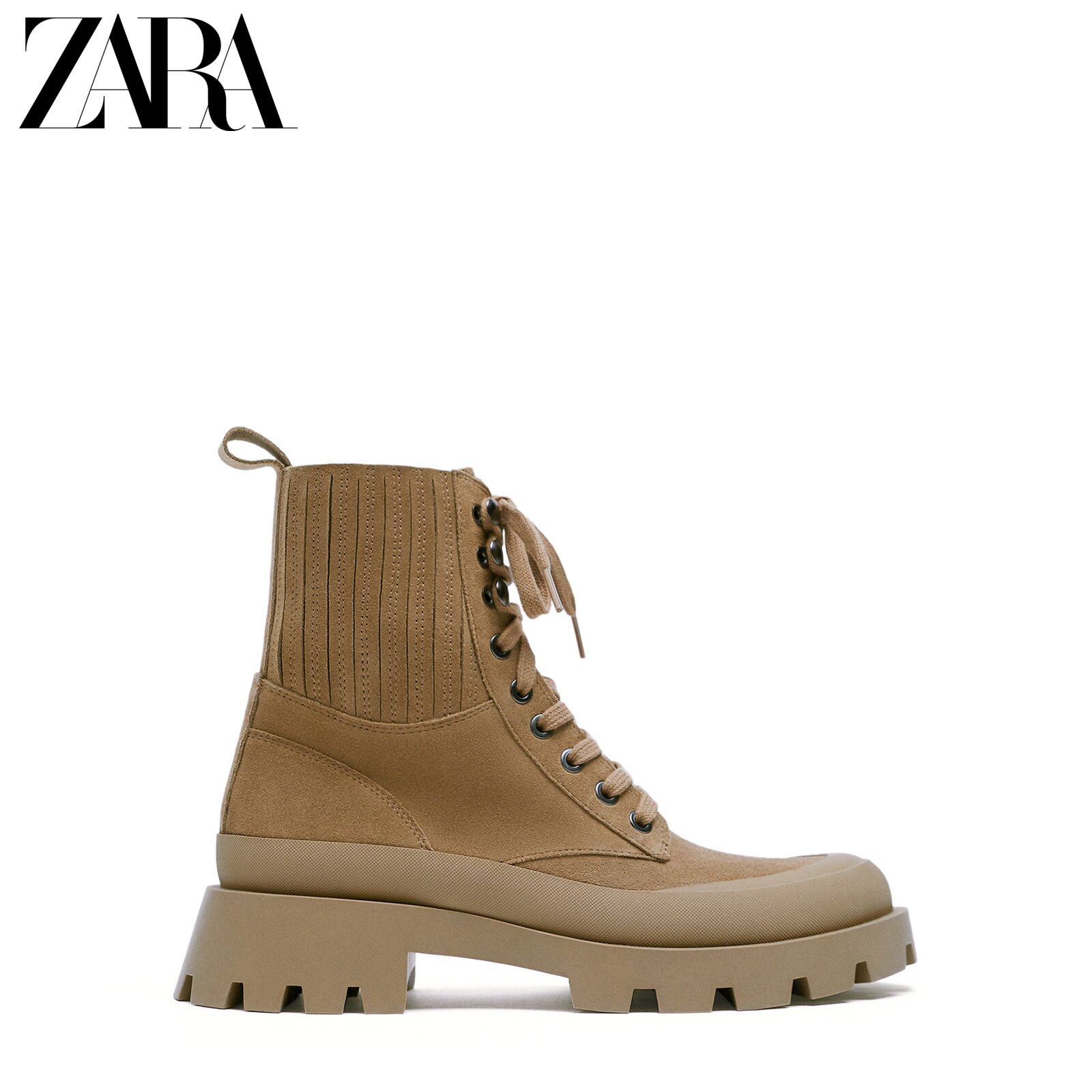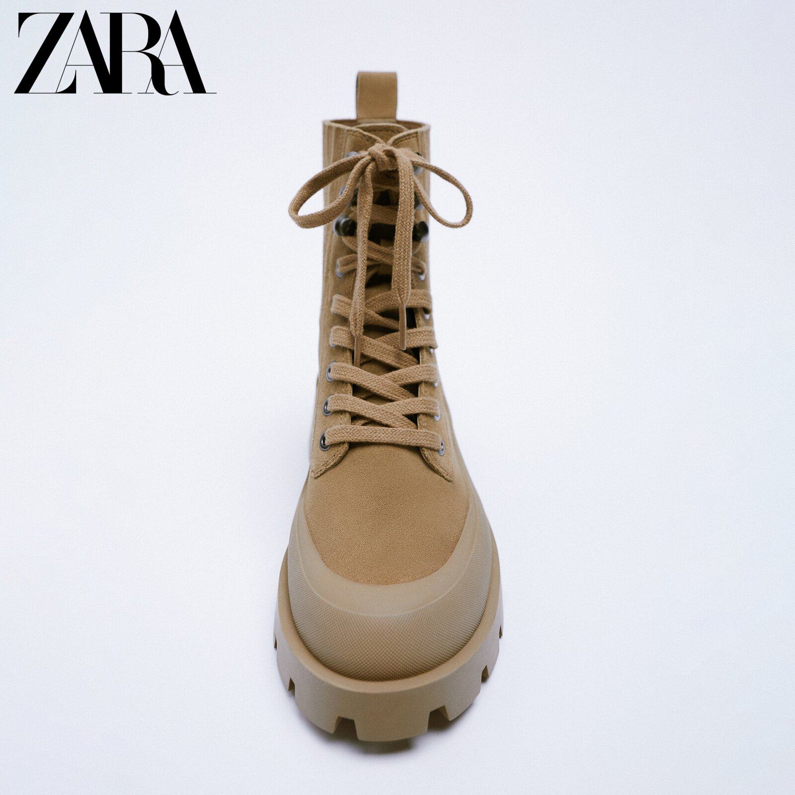ZARA Early Spring New Products Women Shoes Sandbrown Laces Bull Leather Gear Shoes Tooling Boots 2168810107
