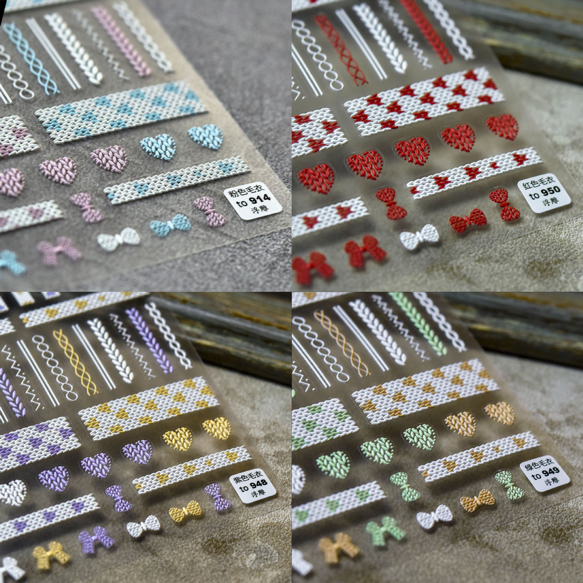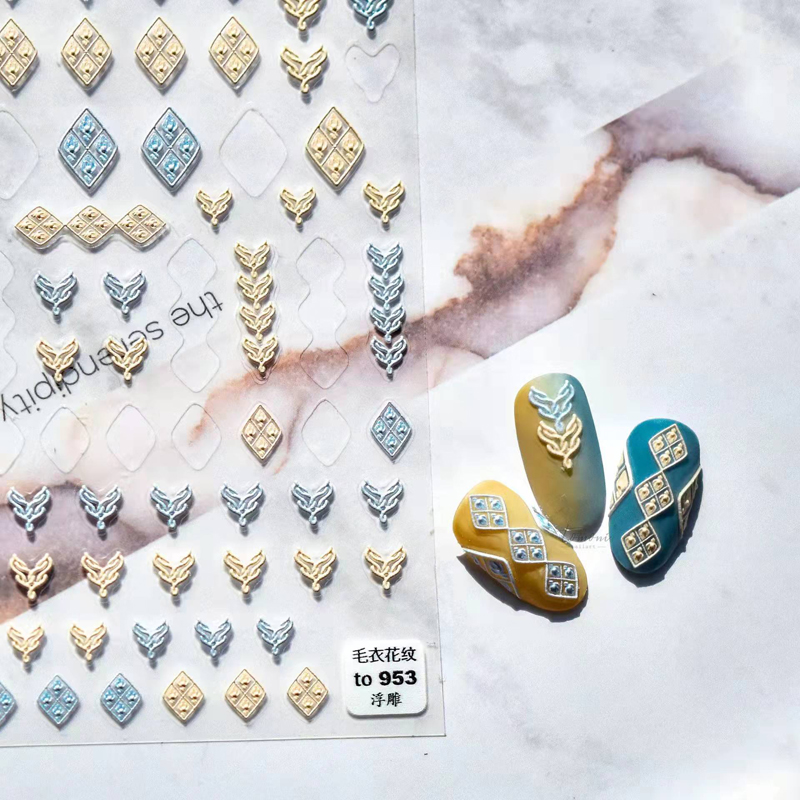 Net red manicure color small fragrance sweater 5D three-dimensional embossed knitted wool plaid nail decoration sticker