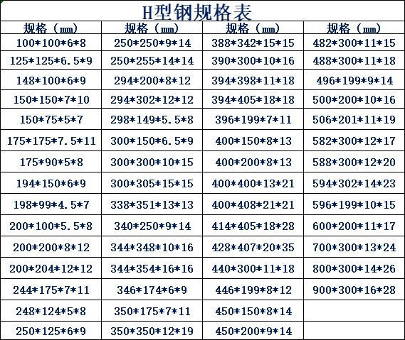 100*100*6*8125*125*6 5*9148*100*6*9150*75*5*7150*150*7*10175
