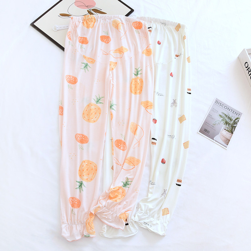 Modale Pregnant Woman Sleeping Pants Summer Thin care Belly Pants Home Pants Women Thin PURE COLOR ELASTIC MATERNAL ADJUSTABLE