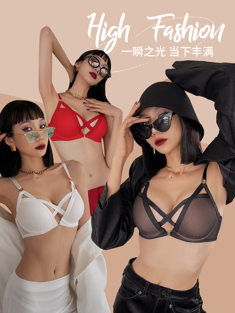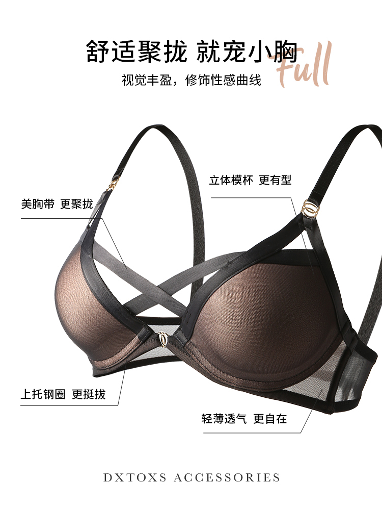 Lingerie female gathering small breasts anti-sagging collection of breast-adjusted pop-milk small sexy pure desire black lingerie suit summer