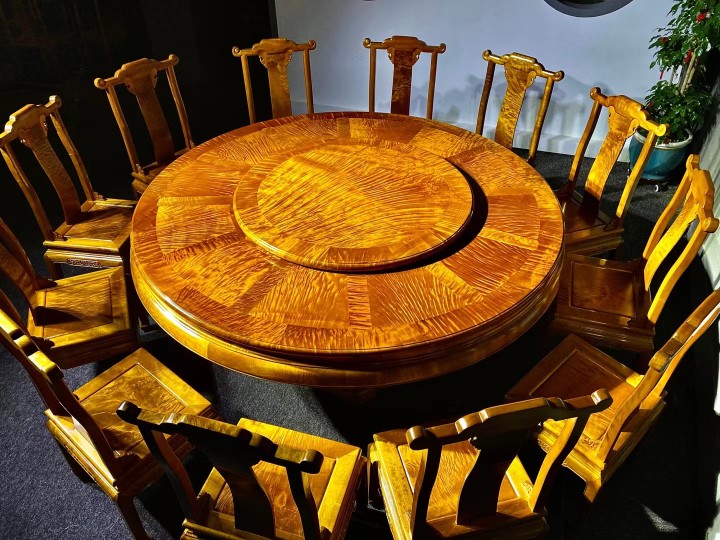 Golden Silk Nanmu Wood Round Table Small Leaf Zhen Nang 180 Solid Wood Dining Table Wooden Chinese Furniture Collection Antique Customizable