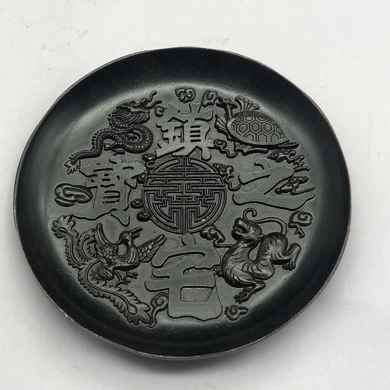 Antique Bronze Collection In the third year of the Republic of China Four God Beasts Plate Insulation Pad Home Decoration Vintage Bronze