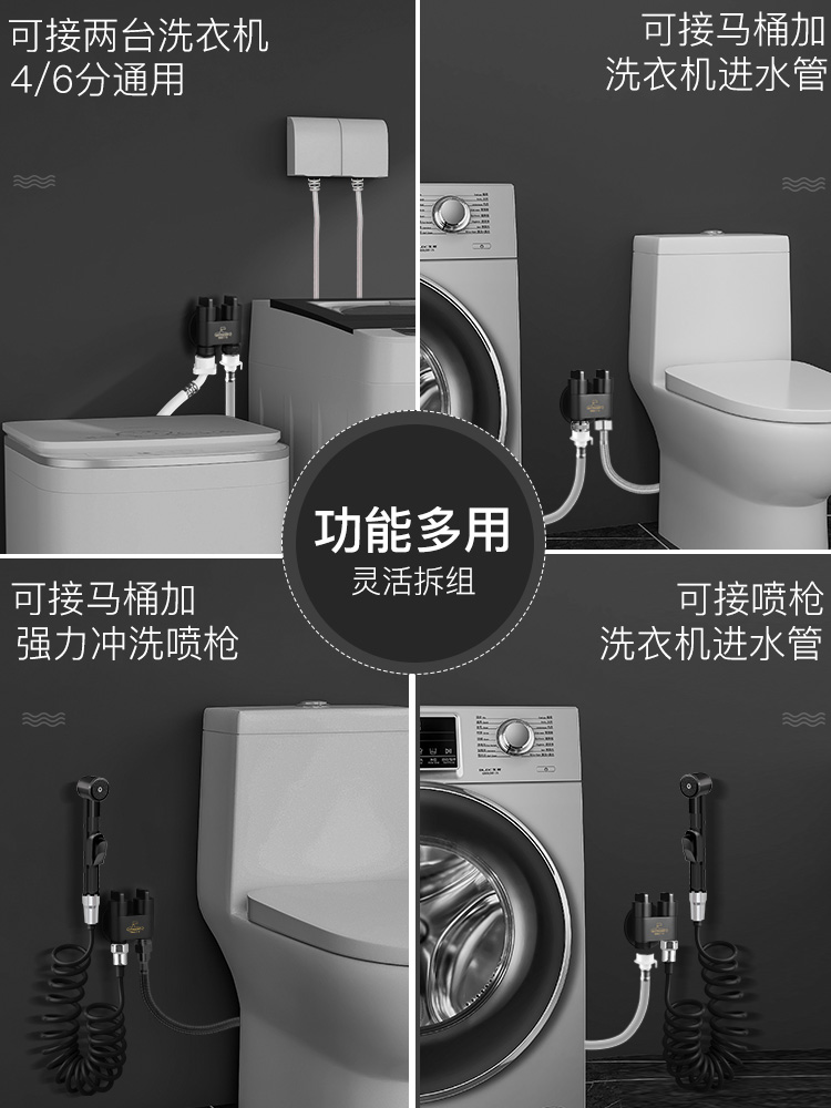 Submarine black toilet flushing spray gun washing machine companion faucet one into two double out of water household three-way faucet